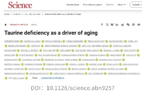 《Taurine deficiency as a driver of aging》