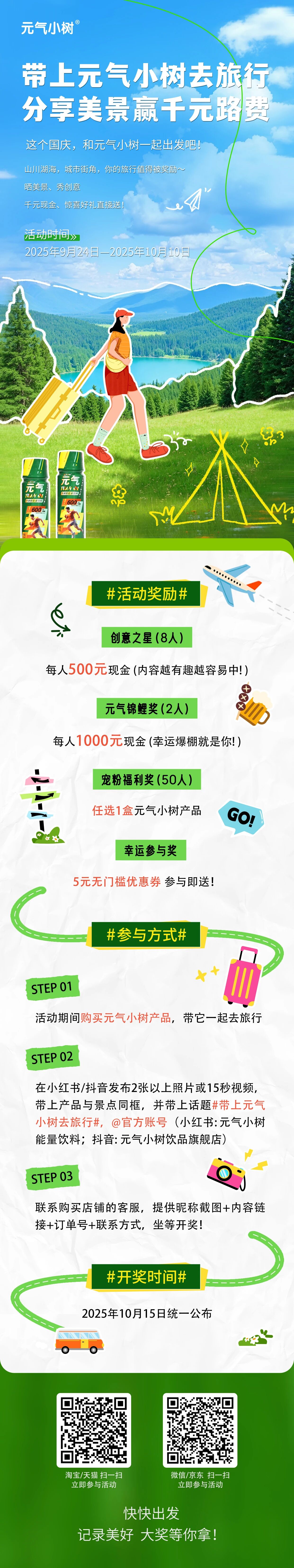 这个国庆带上元气小树去旅行,分享美景赢千元路费!