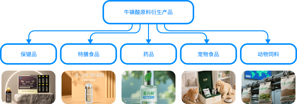结合牛磺酸特有功效,圣元药业已启动圣元树®牛磺酸原料衍生品生产线建设并逐步扩大和完善建设中,产品全面覆盖食品、药品、保健品、宠物食品及饲料等领域,项目建设后,将为全球客户提供OEM和ODM一站式服务,致力成为大健康领域全生命周期的民族品牌。