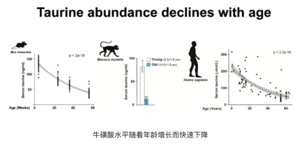 随着年龄增长,个体体内的牛磺酸含量会下降[7]。