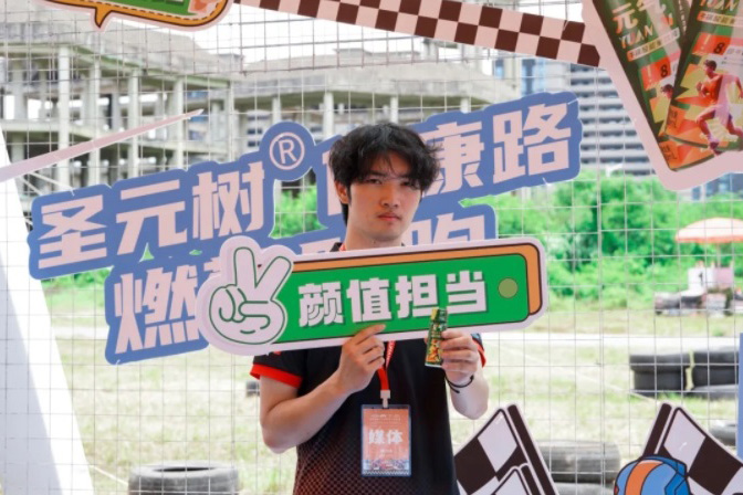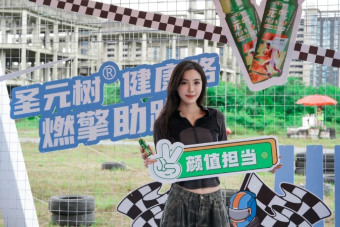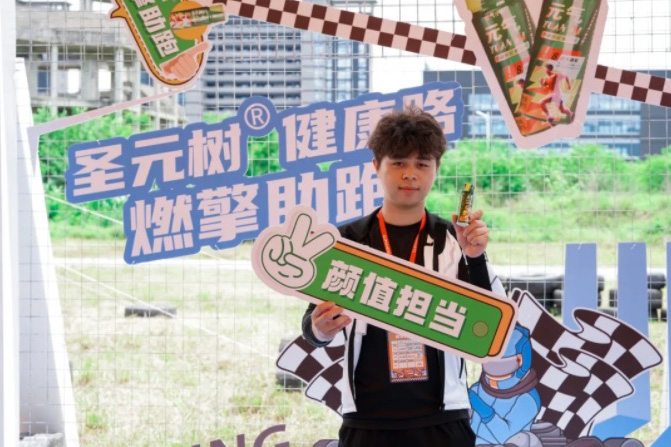 赛事期间,元气小树在赛事线上+线下媒体的多元化曝光矩阵,实现了品牌形象的高效传递与深度触达。赛道沿线醒目的slogan“圣元树·健康路”道牌伴随车手每一次疾驰强力刷屏,将品牌理念烙印于速度激情的核心场景。位于P房的元气小树能量补给站,不仅以专业服务为车手和工作人员高效补充能量,其鲜明的视觉形象在现场呈现出最亮眼的打卡点,更成为现场人气聚集地,吸引大量人群饮用及体验。观赛区众多网红、媒体、百万级KOL自发来到打卡点合影留念、体验产品,再次形成品牌的二次传播,相关话题在社交平台持续升温。