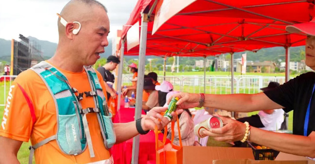 在赛事主会场,元气小树的品牌展位成为完赛后选手们驻足休憩的“能量驿站”。不少参与者在饮用后表示:“口感清爽,不会太甜腻,喝完确实感觉更有力气继续前行。”“在山野间徒步时能喝到这么专业的能量饮料,体验很棒!”